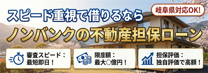 岐南町や笠松町に不動産をお持ちの方で、「銀行で断られてしまった」「今すぐ資金が必要」という方は、ノンバンクへの相談を検討してみてください。